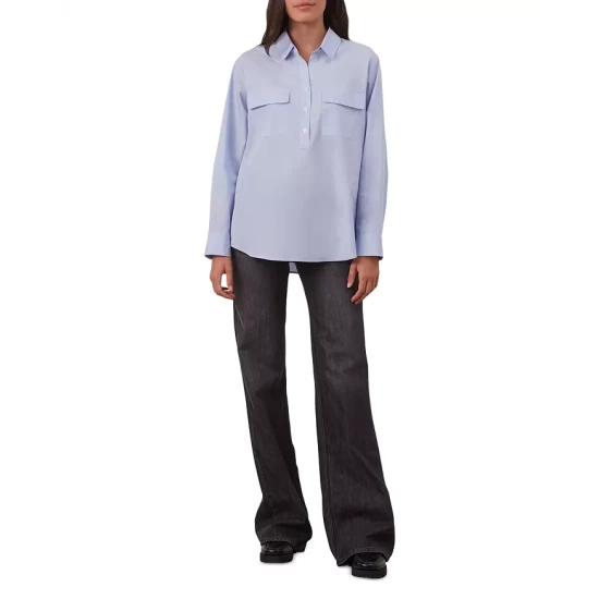 - Long sleeves, buttoned cuffs