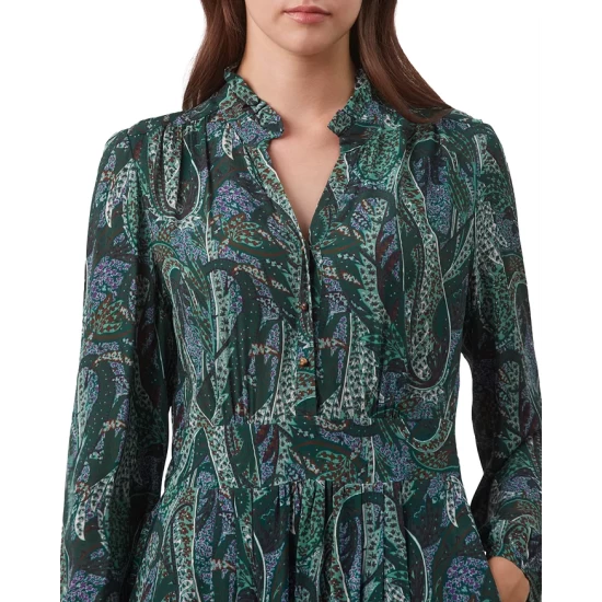 - Mandarin collar with ruffle