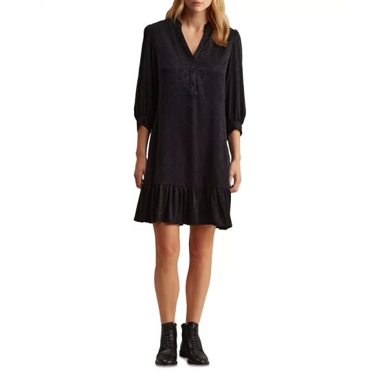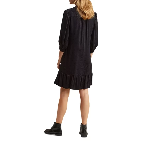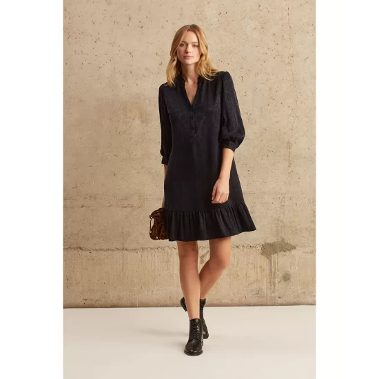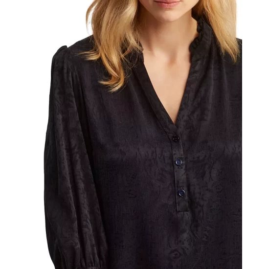 - Three-quarter length blouson sleeves, buttoned cuffs
